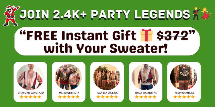 Instantly download 6 party-dominating secret guides worth $372 for FREE! with any ugly sweater purchase!